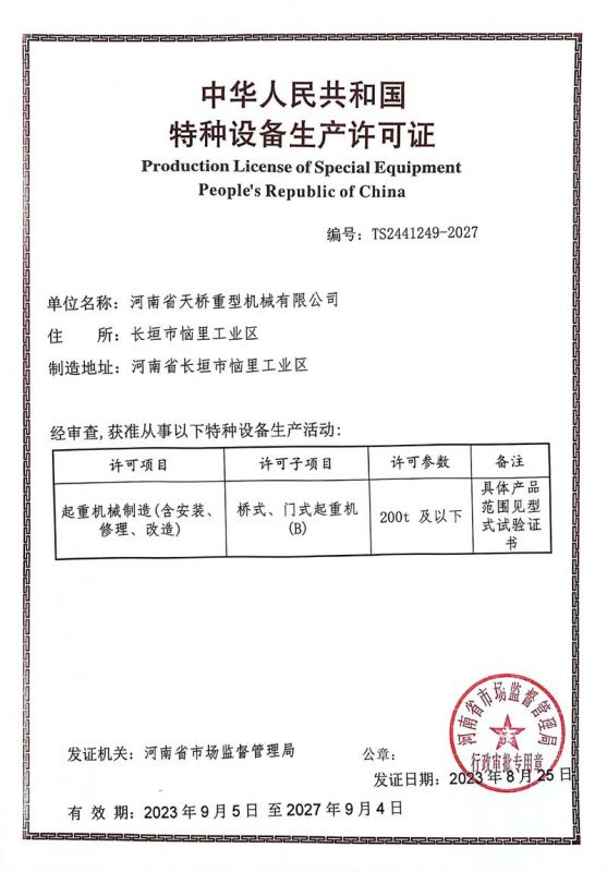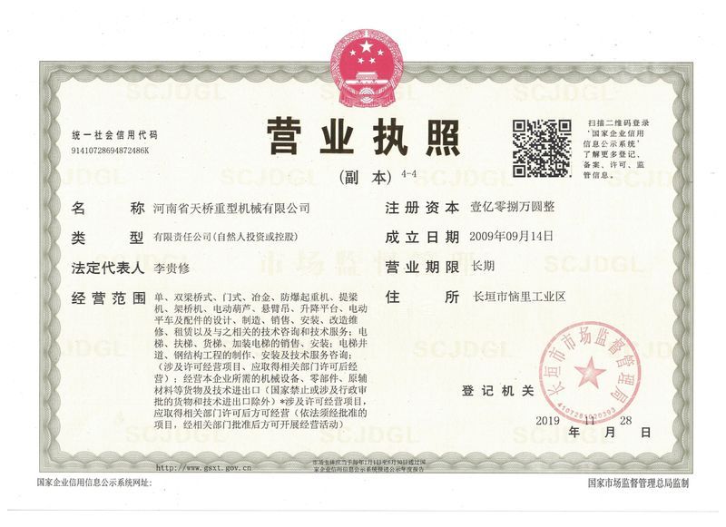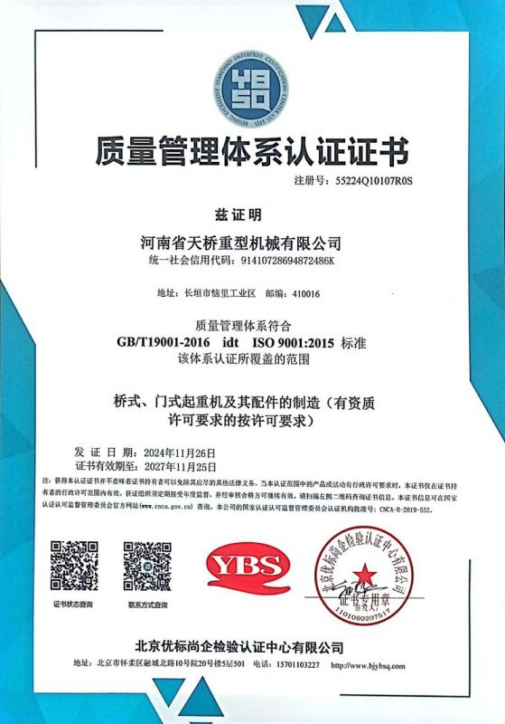 河南省天橋重型機械有限公司,位于河南長垣起重工業園區,地處中原,交通便利,新菏鐵路橫貫東西,106國道縱橫貫南北,省道308線、213線穿越全境,濟東、大廣、高速公路在這里形成交匯,廠區距新鄭國際機場125KM,優越的區位優勢鑄就無限的發展空間。 河南省天橋重型機械有限公司是起重機制造工業企業,主要從事“貴起”牌電動葫蘆,起重機五大系列機的制造、銷售。 "天橋起重,舉起世界的力量" 讓我們攜手天橋起重共同構筑美好的明天!!!